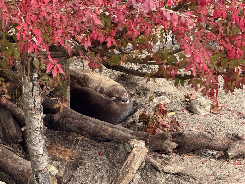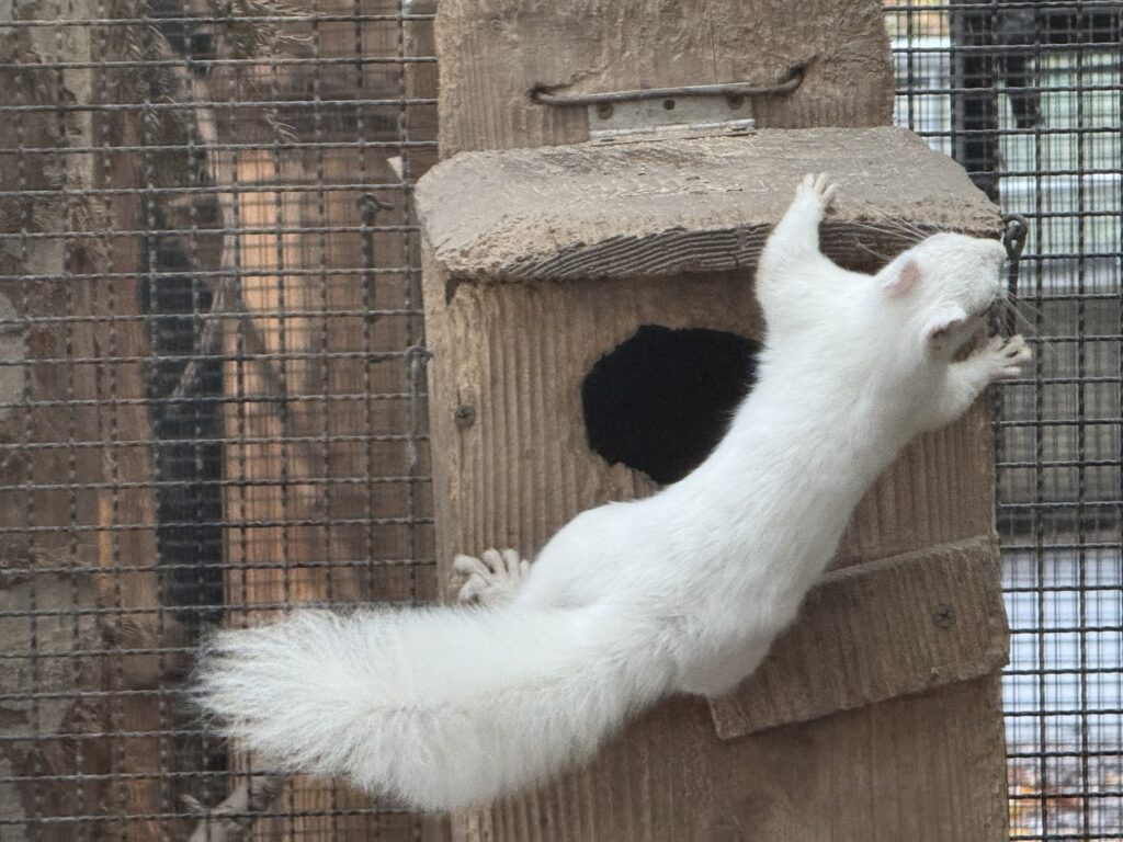 入って最初の下り坂のところにいるもふもふ(タヌキ)とかモフモフ(リス)とかモフモフ(キツネ)とか。ここにはアルビノの ニホンリス ”ルビー” もいます。でも、アルビノを理由に特別視しないで動物福祉に配慮することにしたという説明がありました。つい差異があるものに対して持ってしまいがちな感覚を意識的に排除することは重要だと思いました。そのほか、動物の環境エンリッチメント、そしてそれを観察するヒト(来園者)に対する問いかけが非常に考えさせられる体験をしたなというところがとても印象に残りました。