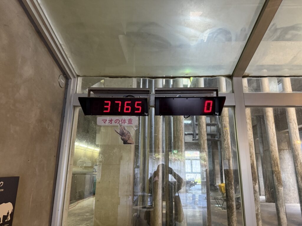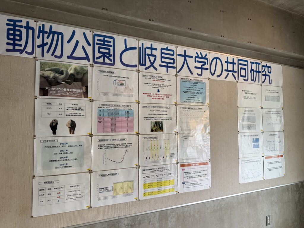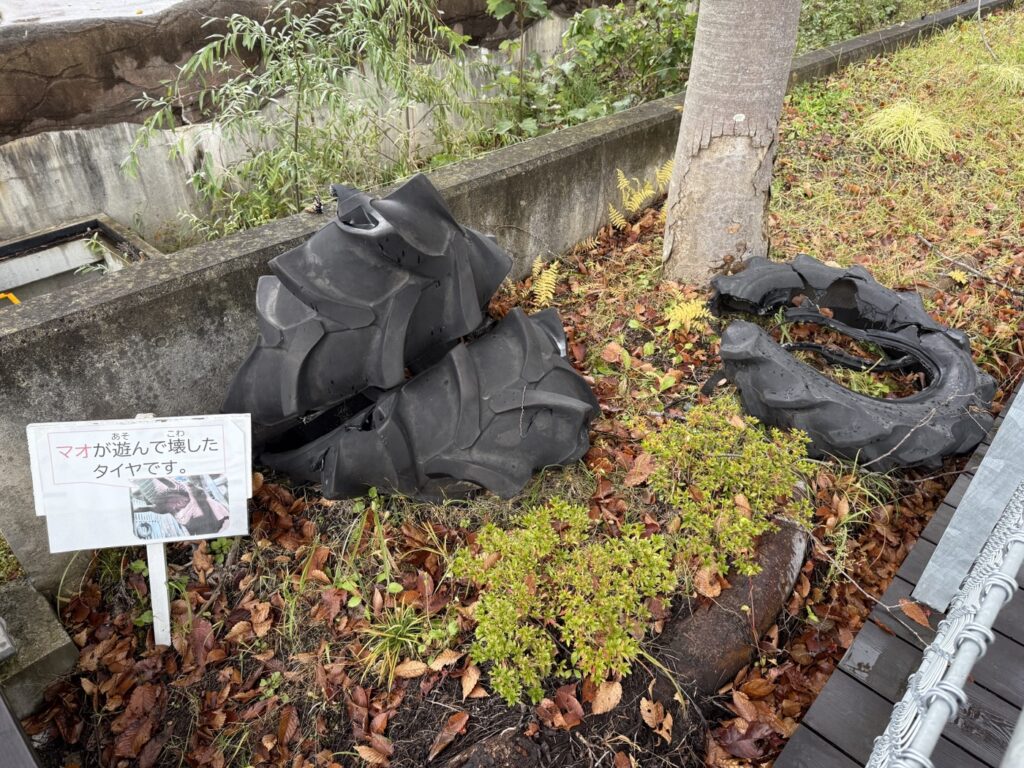 アフリカゾウの ”マオ” が遊んだあとのタイヤも展示していました。デカいタイヤがボロボロになっている様は「さすが大型動物……」ていう感。土日ではなかったのでえさやり体験はできませんでしたが、奥の建物でマオの体重などが。女の子やぞ() 産学連携の展示で学習要素もありましたので、繁殖のための取り組み、ぜひ現地でご覧ください。